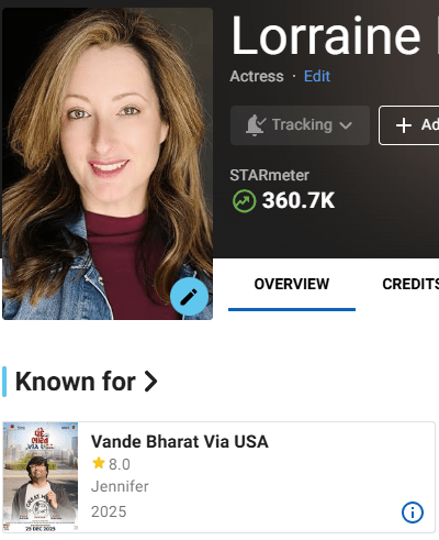 Last year I was cast in a feature film, Vande Bharat Via USA, directied by Jaymin Patel. starring Malhar Thakar and Kiley Pearson. I play the mother of Kiley’s character, a leader in US Government Immigration.